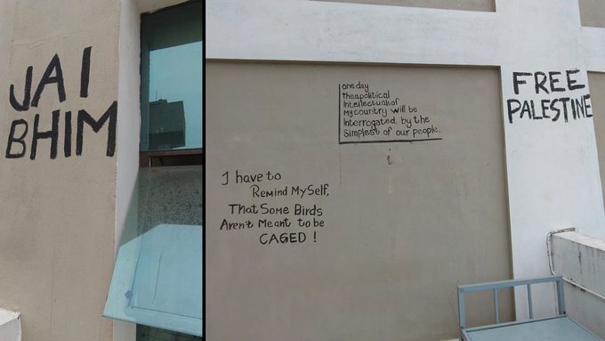 क्योंकि RGNIYD की कार्रवाई सिर्फ तीन छात्रों को निलंबित नहीं करती –यह भारत के संविधान, न्याय और शिक्षा की आत्मा को निलंबित करती है। हम सबकी ज़िम्मेदारी है पूछना –क्या एक पेंटिंग से देश की सुरक्षा खतरे में है? क्या सिर्फ मुस्लिम छात्रों पर कार्रवाई करना “अनुशासन” है या साफ़ भेदभाव? क्या छात्रों की आवाज़ को कुचलना ही अब “राष्ट्रवाद” है? अगर आज “फ्री फिलिस्तीन” लिखना अपराध है, तो कल “जय भीम”, फिर “इंकलाब”, फिर “भारत माता की जय” भी अपराध बन जाएगा –क्योंकि ये तय नहीं होगा कि तुमने क्या कहा,बल्कि ये देखा जाएगा –तुम कौन हो? अब खामोशी जुर्म है। अब सवाल करना ज़रूरी है। अब सच बोलना ही इंकलाब है। जिन्होंने फिलिस्तीन की आज़ादी की बात की, उन्हें भारत में आज़ादी से पढ़ने नहीं दिया जा रहा।